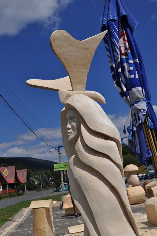 Materiál topol, výška 240 cm, socha je vytvořena výhradně motorovými pilami a zabroušena.