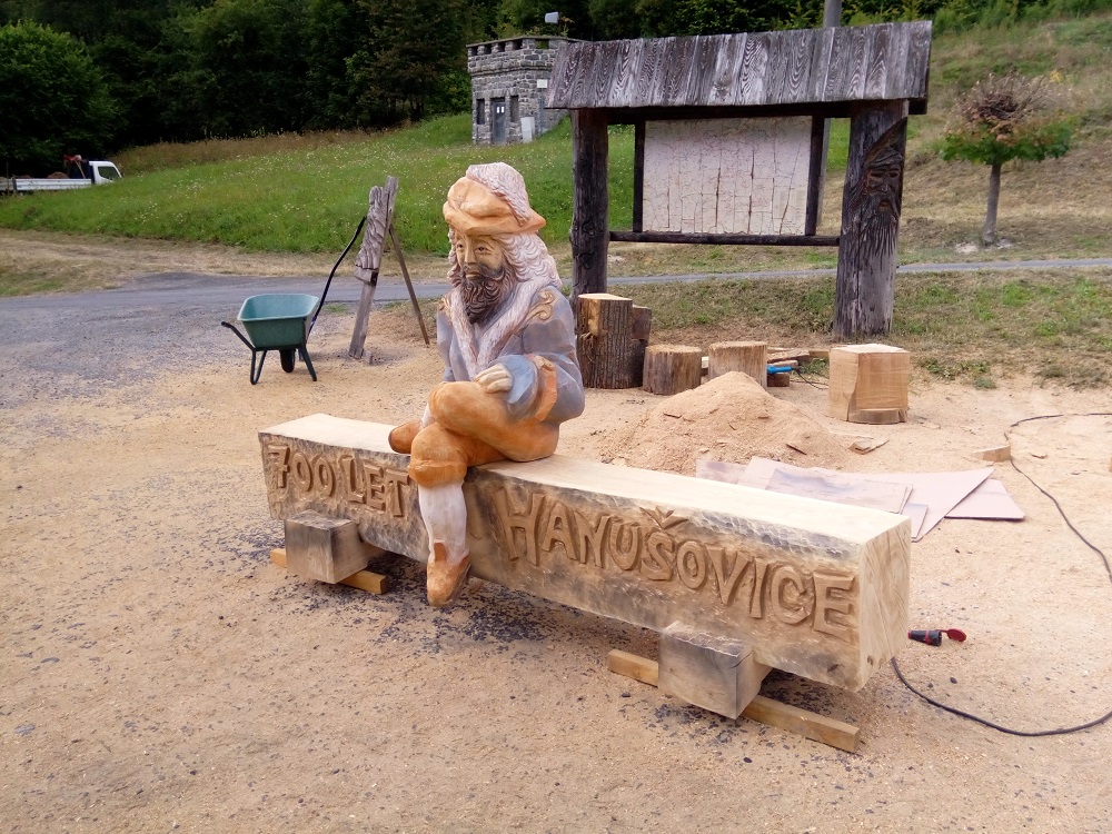 Materiál dub, velikost životní, socha je vytvořena s použitím výhradně motorových řetězových pil.