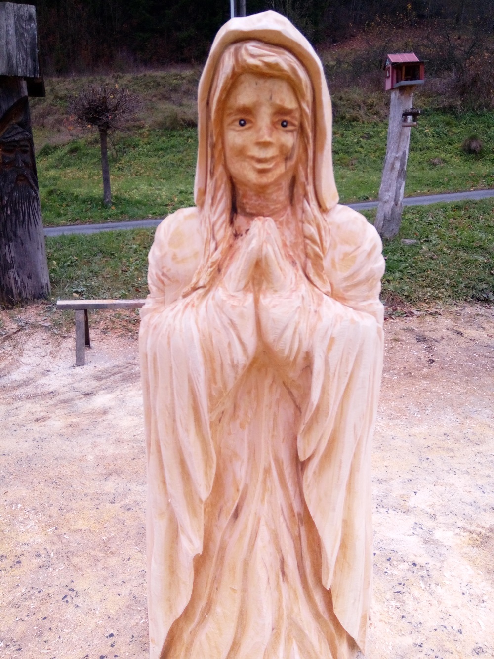 Materiál lípa, velikost životní. Sochy jsou vyřezány výhradně motorovou pilou.